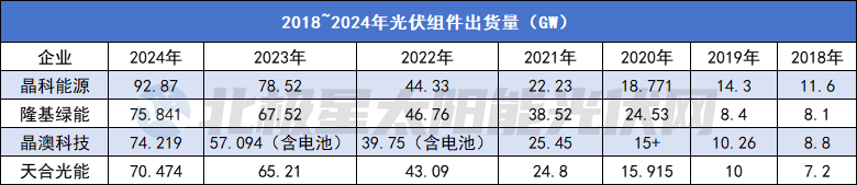 這一格局自2018年後便穩定至今,雖排位會有上下浮動,但四家企業無一缺席,四大組件寡頭無可爭議。七年間,四大巨頭的年度組件出貨量也由不足10GW狂飆至70GW+甚至直追百吉瓦。